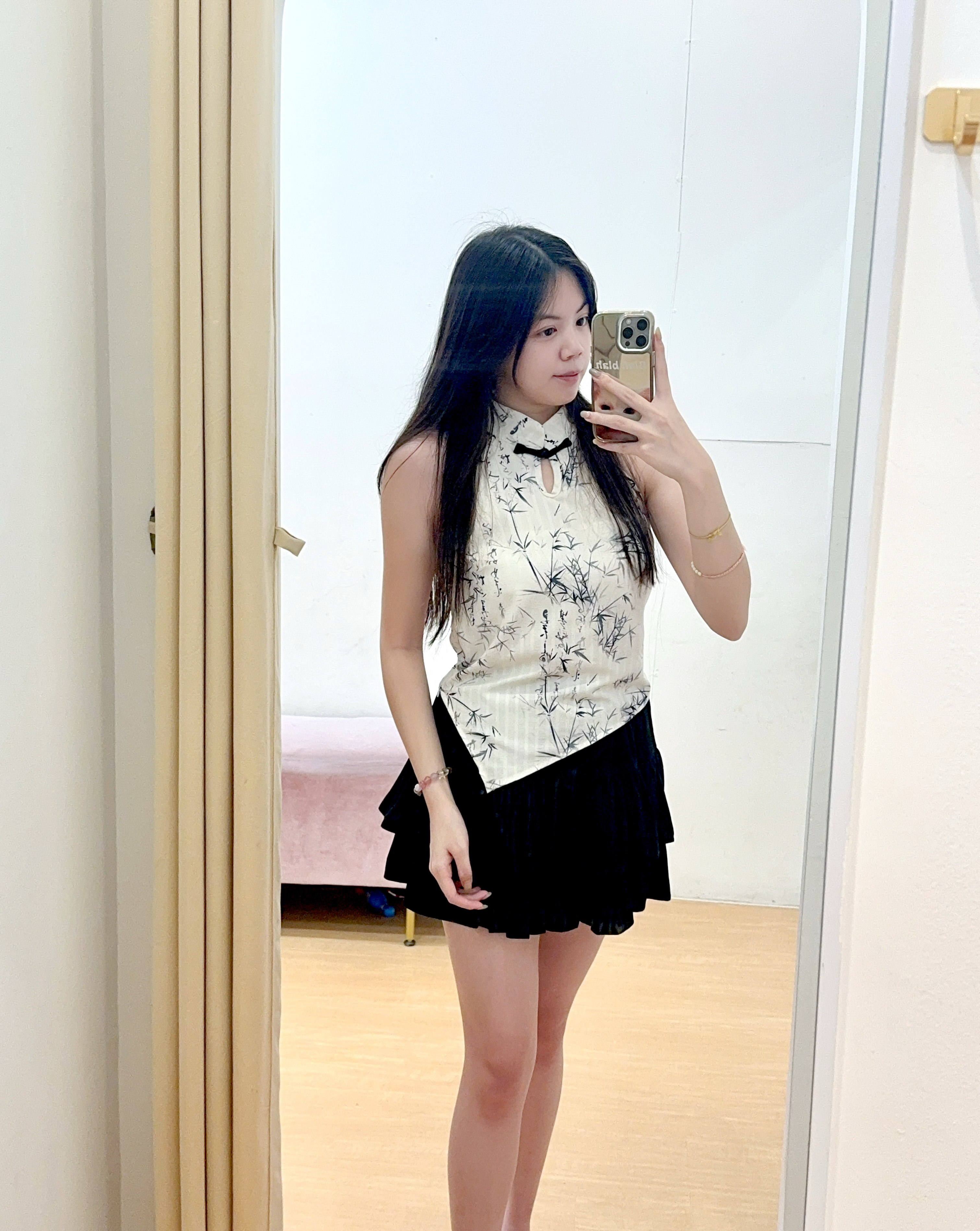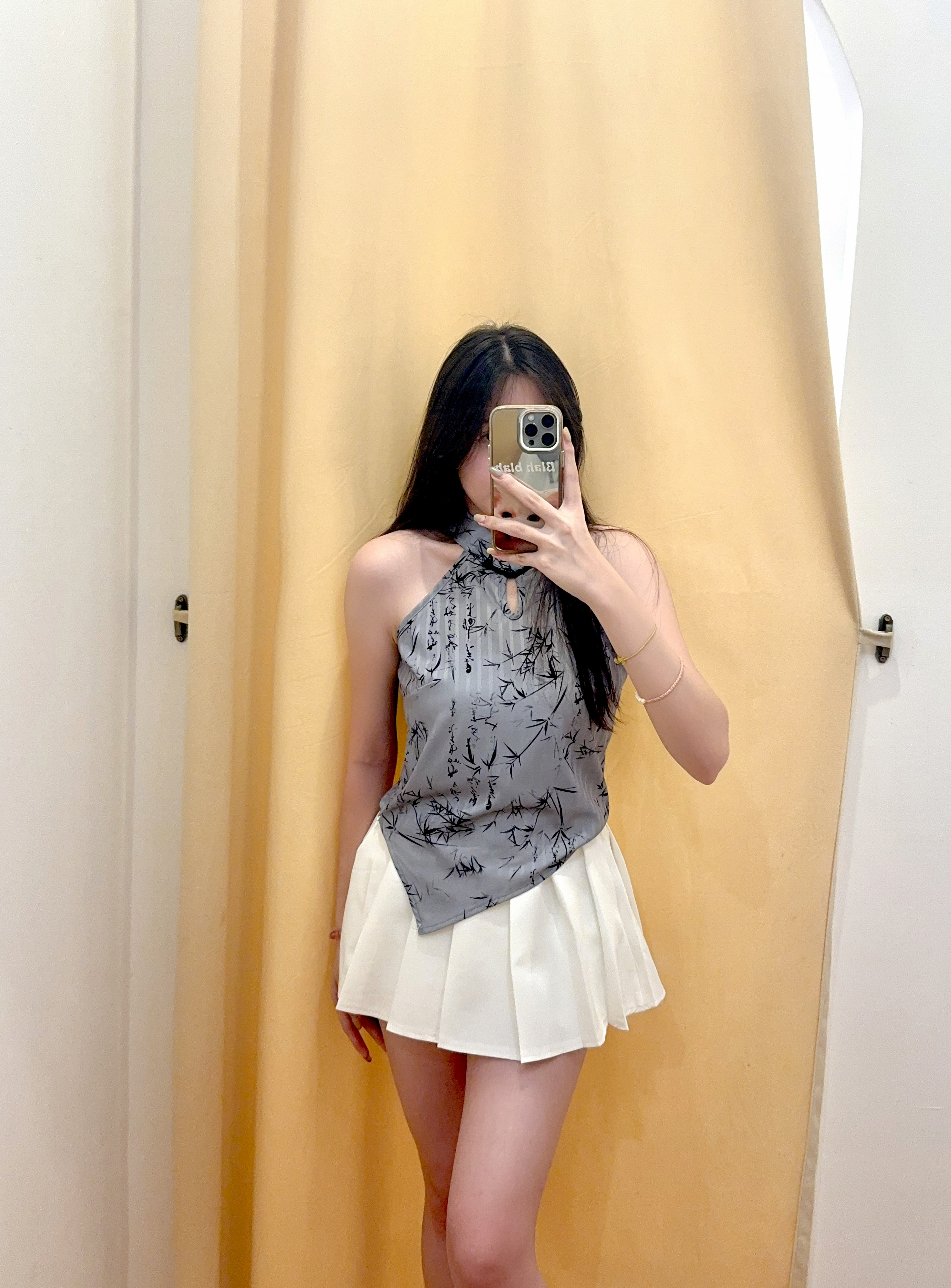 新中式水墨画挂脖盘扣不规则上衣 R2878