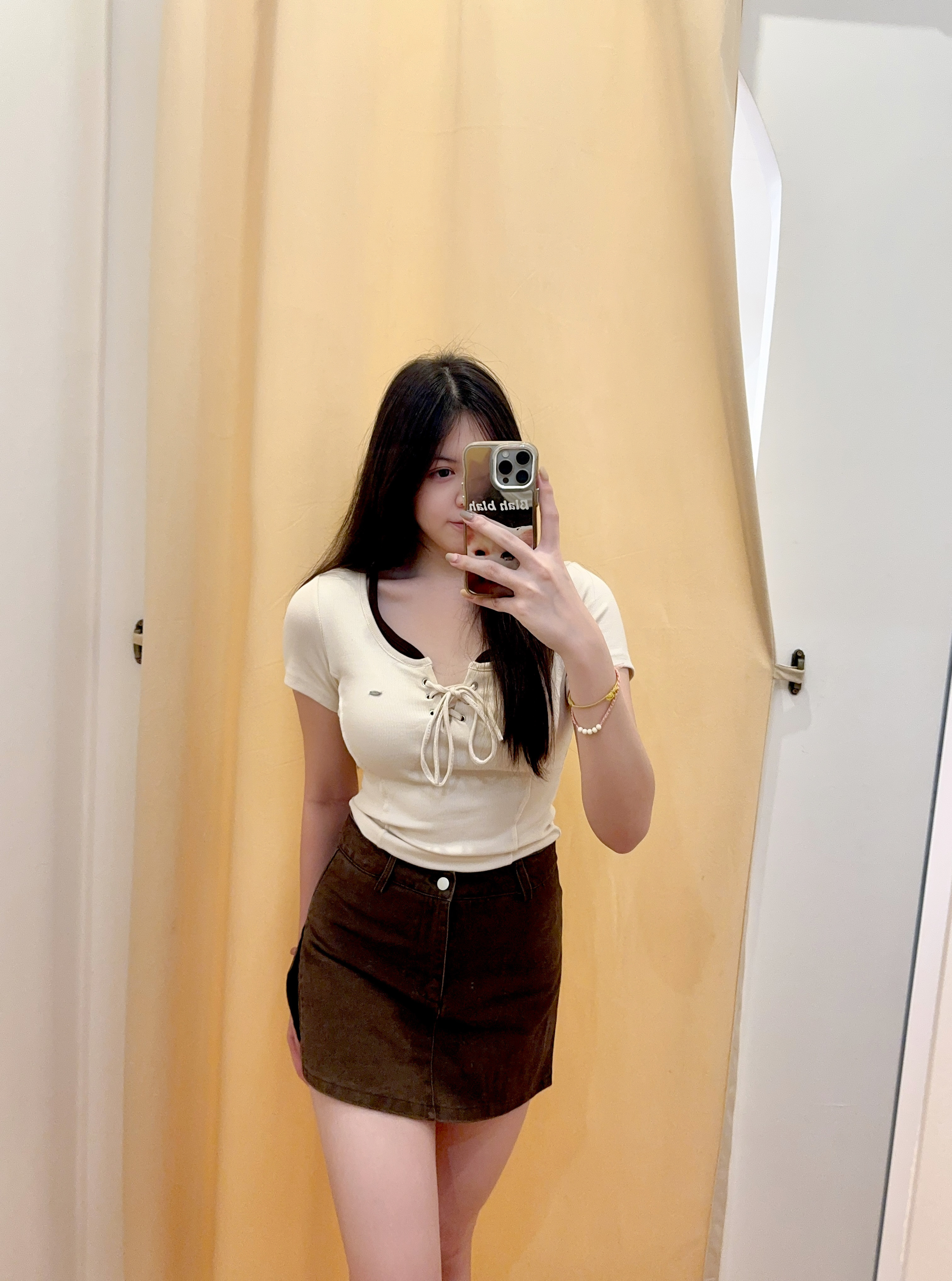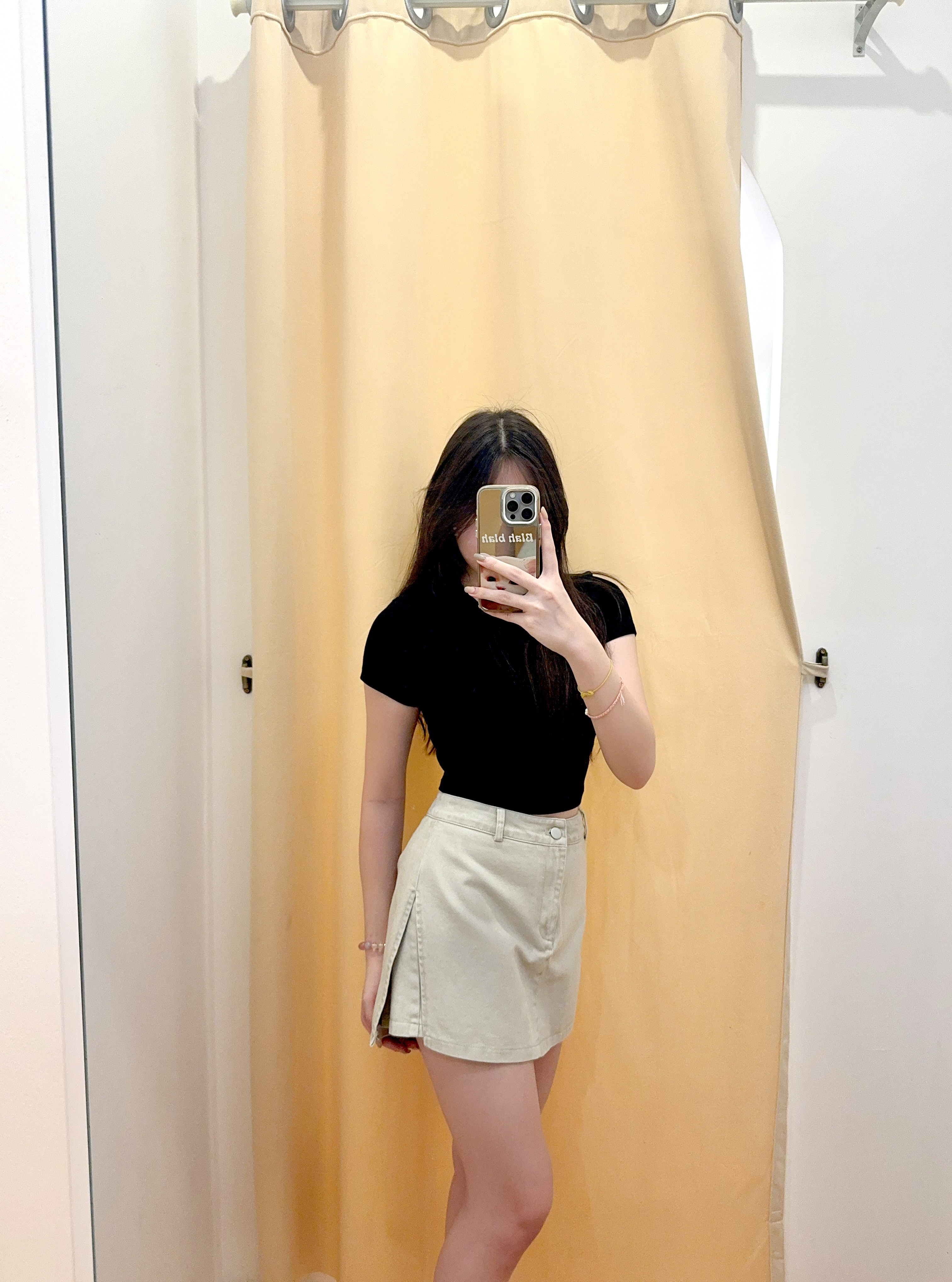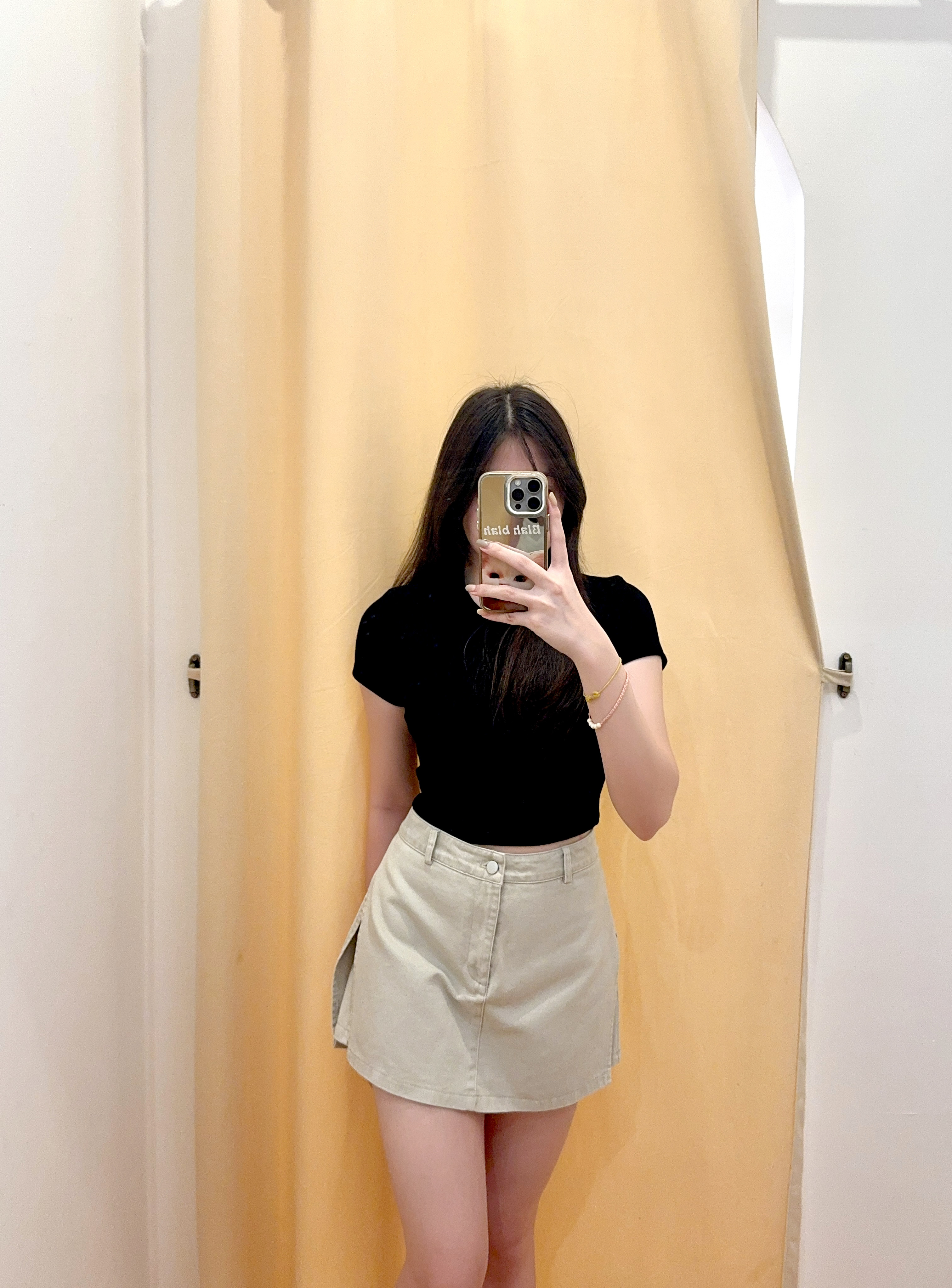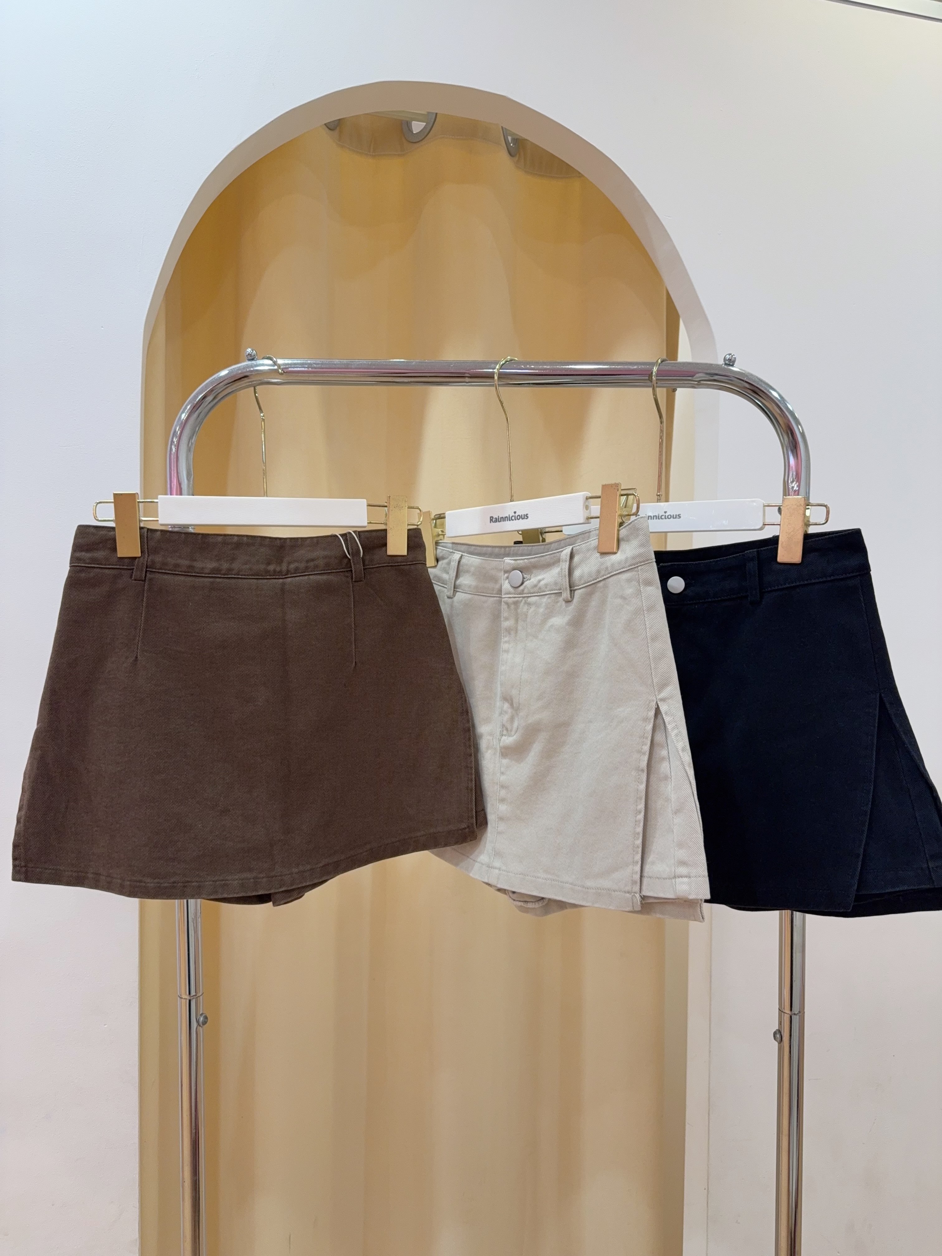 Code: R2717 设计感侧开叉A字牛仔半身短裙